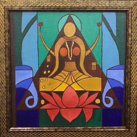 First two paintings depict the abstract form of Goddess Lakshmi. She is the goddess of wealth, fortune and prosperity, both material and spiritual.