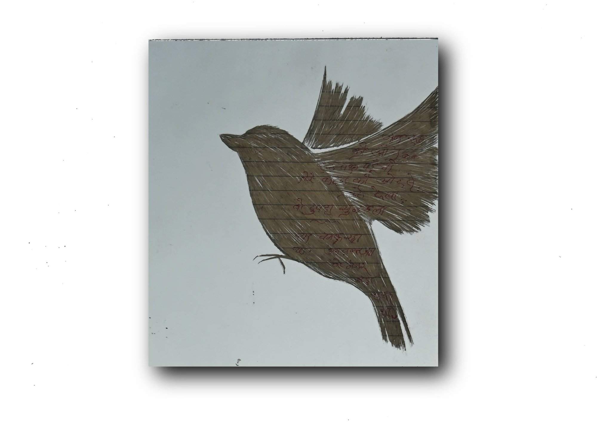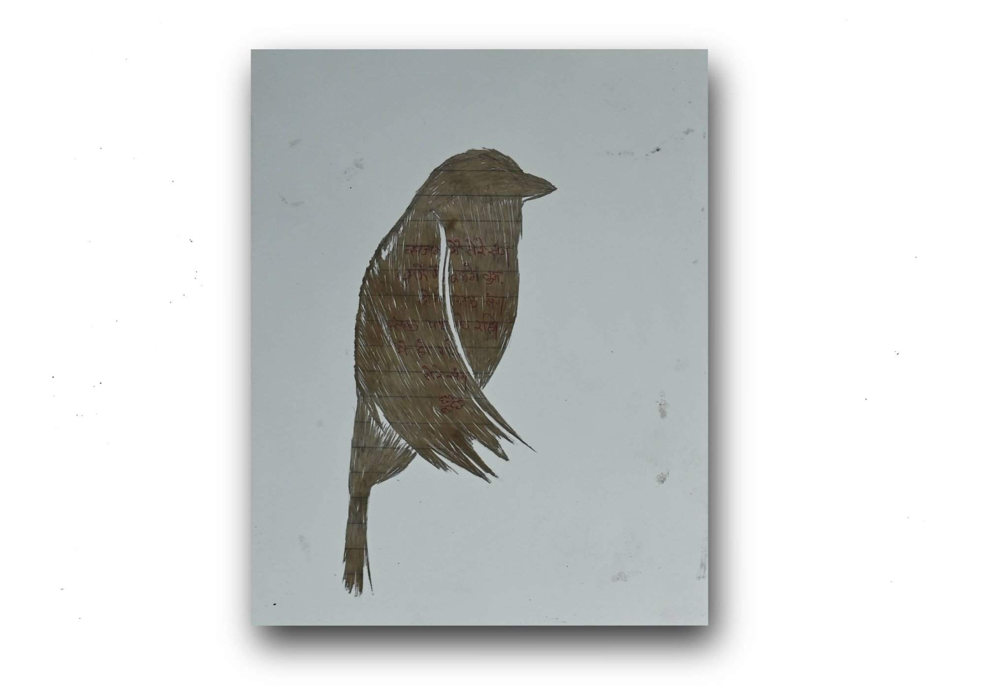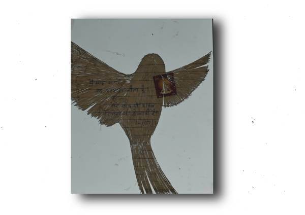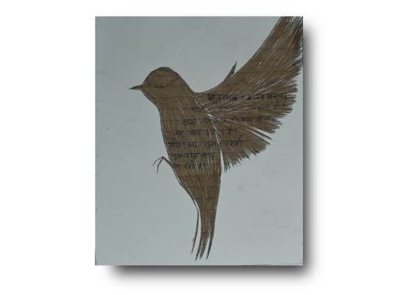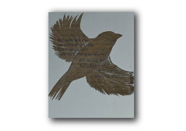 The motifs of the sparrows bring in another notion in this receipt of a changing time in this series along with the personal history merged with visual storytelling. During the advent of rapid digitalization, the multiplication of numerous mobile towers in the villages and small towns of India caused a considerable plight to large numbers of birds like sparrows and pigeons. The electromagnetic radiation through the towers harms their natural navigational abilities. The number of sparrows and other birds has gradually become much less through this time of technological advancement. The artist focuses on these lost feelings of joy where the handwritten letters were a memento of love and birdsongs were much closer and frequent. Both the tradition of writing letters with love and care and the visibility of the flock of sparrows are in scarcity now, while Praveer attempts a poetic revival through this artistic archiving of historical love letters embodying a deeply personal value and commenting on environmental sustainability, pointing to the harmful technological behaviors to the nature.Â