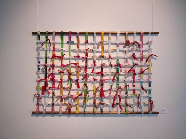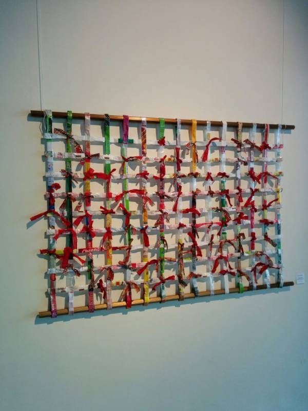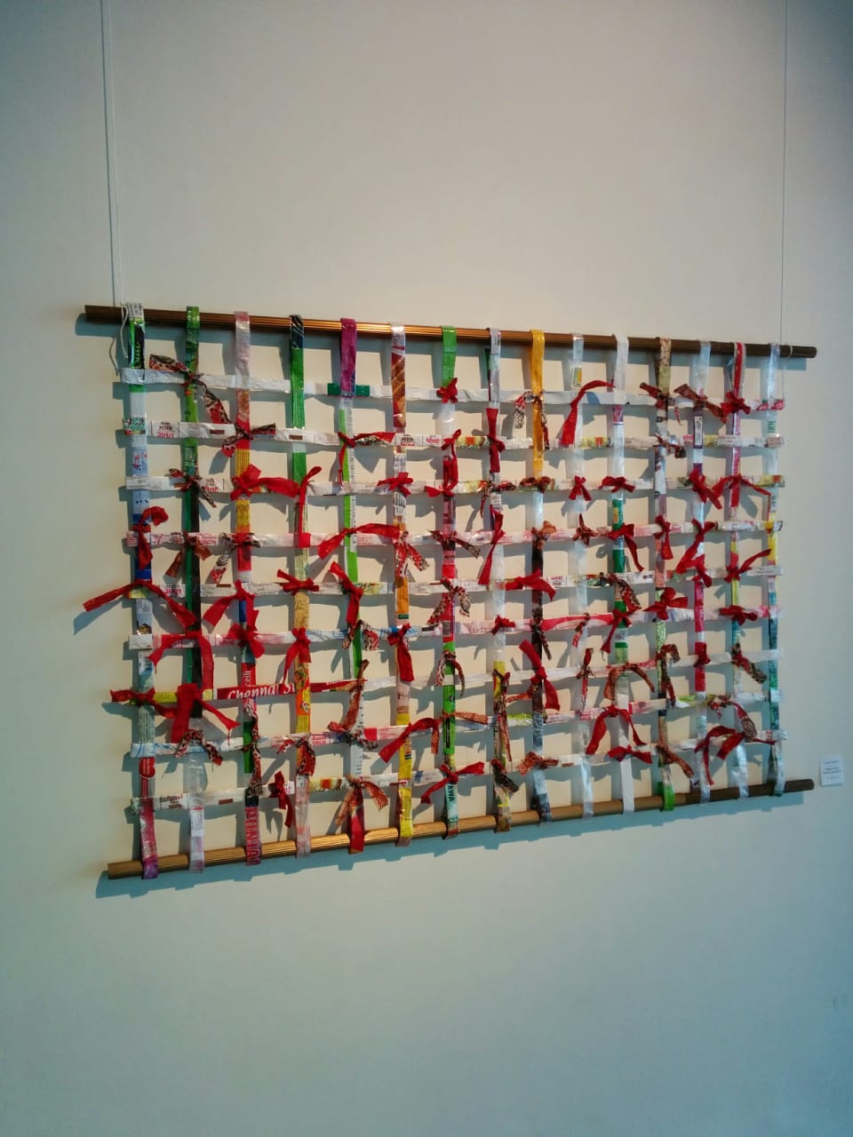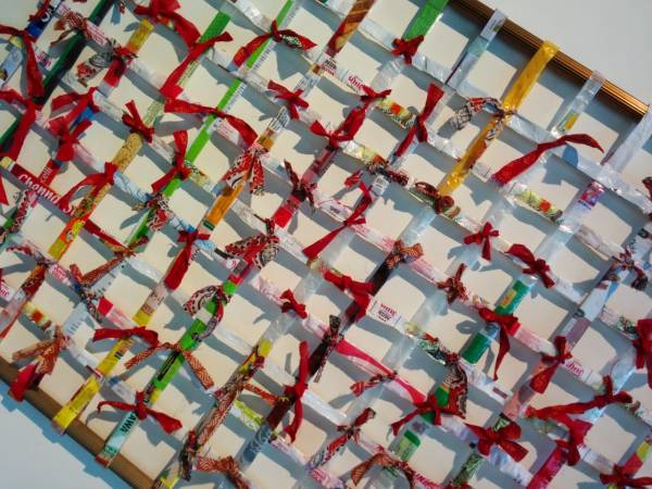 Mannat is an interactive installation inspired by the Ajmer Dargah. It is crafted from post-consumer plastic wrappers, woven into a delicate mesh structure that reflects the growing issue of plastic waste. The work becomes part of a space frequented by the people, and as part of the experience, visitors are given strips of textile waste to tie onto the mesh, symbolizing a personal promise to be more mindful of their plastic consumption. This simple yet powerful gesture encourages the audience to reflect on their individual role in environmental protection, creating a sense of shared responsibility in reducing plastic waste for a sustainable future.