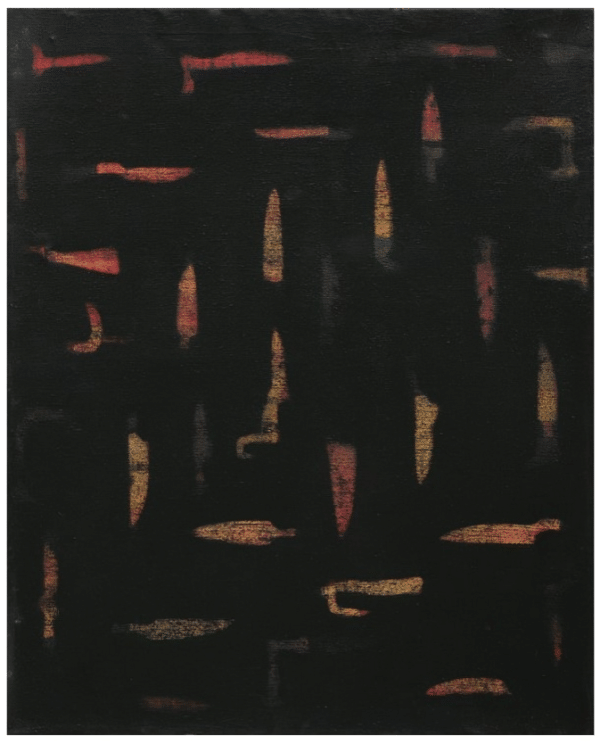 In all of the untitled paintings of Rajendra Patil, the voyage is toward pure, concrete abstraction- questioning the active and the passive, the subject and the object. The agricultural, and industrial tools in the work achieved a fluid, floating form brilliantly composed on the dark background, the forms and the shapes hinting toward the historical and cultural intricacies investigated by the artist. The vibrance shade of red and ochre invites the viewers into conversation with this highly energetic piece of work, where the conversation with the ever-evolving perception of the work- flows into boundless spaces of known and unknown.